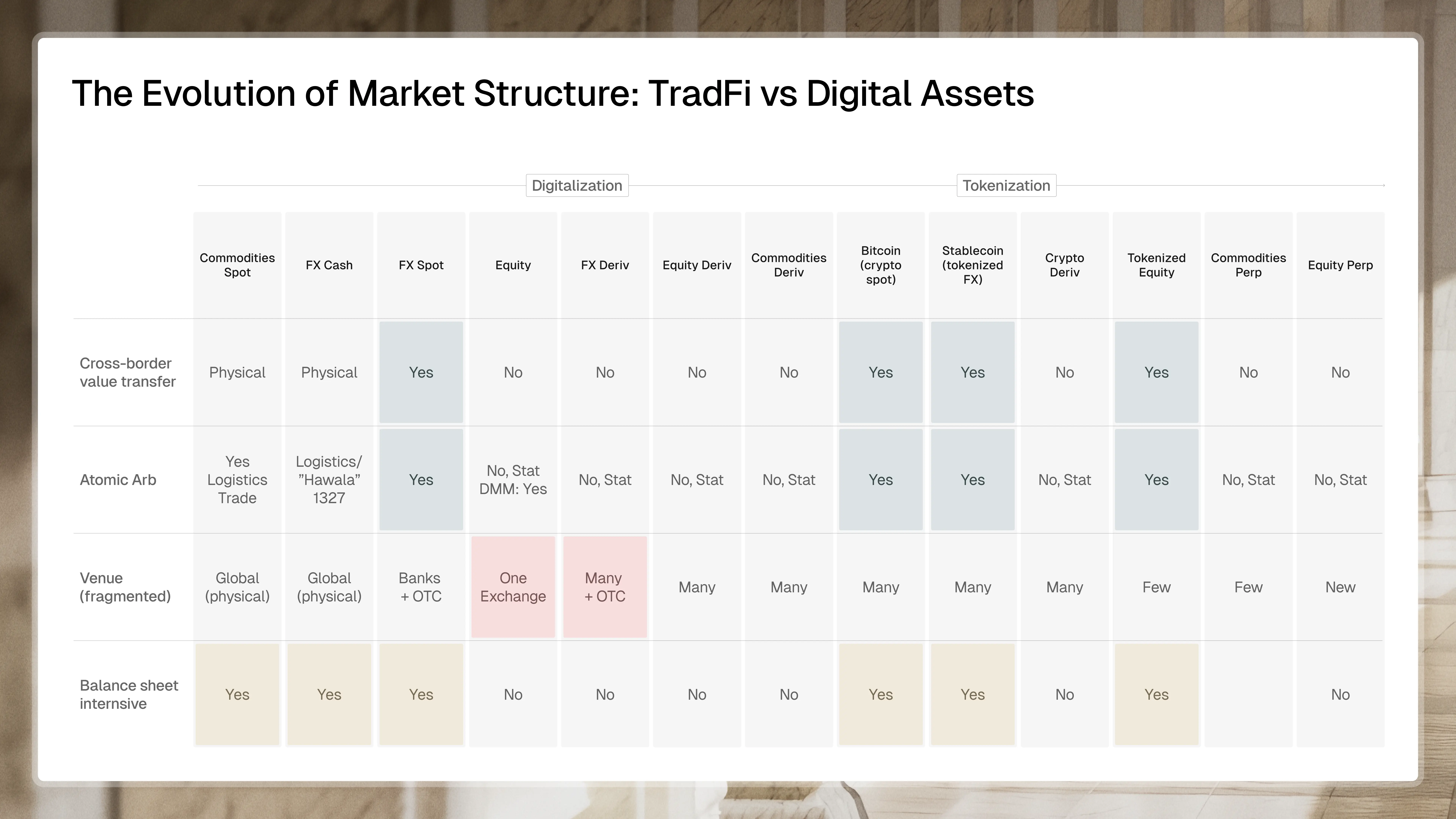 While tokenization improves the transferability of assets, it has currently resulted in market structures resembling the fragmented global FX markets rather than the centralized equities market